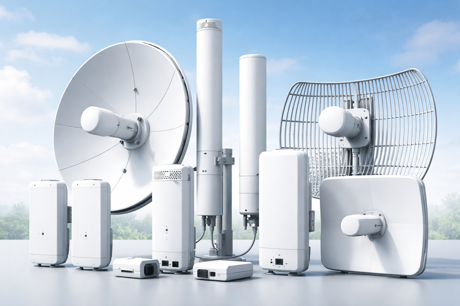 Mi koristimo specijaliziranu outdoor radio komunikacijsku opremu za povezivanje udaljenih lokacija i pružanje bežičnog pristupa internetu klijentima. Naša oprema je dizajnirana za Point-to-Point (PtP) i Point-to-MultiPoint (PtMP) veze, sa PoE napajanjem, IP-rated kućištima za vanjske uvjete i robusnom 5 GHz / 6 GHz bežičnom vezom za pouzdan prijenos podataka.